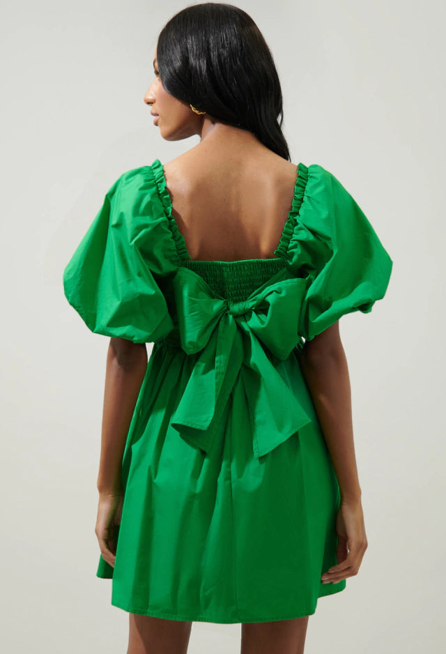 Dale un toque de encanto a tu guardarropa con nuestro vestido corto en tono verde. Este diseño cuenta con mangas cortas abombadas que aportan un estilo coqueto y moderno. El elástico en espalda asegura un ajuste cómodo y favorecedor, mientras que el cordón de ajuste en la parte de atrás te permite crear un elegante moño, añadiendo un detalle sofisticado. Perfecto para días soleados y eventos casuales, este vestido es la elección ideal para destacar con frescura y estilo. ¡Hazlo tuyo y deslumbra en cada ocasión!